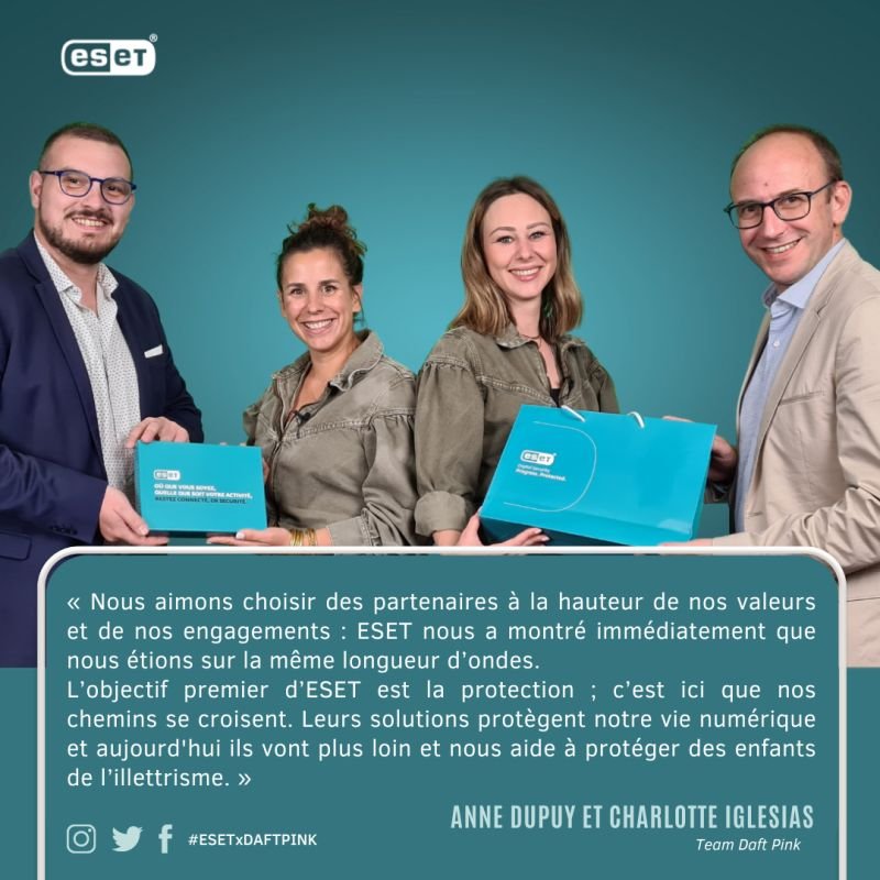 Cet équipage, qui apporte son soutien aux associations Ruban Rose et Enfants du Désert , est soutenu par le leader européen de la cybersécurité, le groupe ESET France et Afrique Francophone.