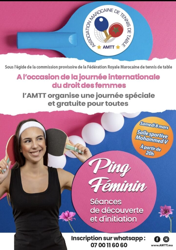 Et puis sous l’égide de la Commission provisoire chargée de la gestion du tennis de table marocain, l’Association Marocaine du Tennis de Table de Casablanca organise une rencontre sportive pour honorer toutes les femmes marocaines, sportives ou non.