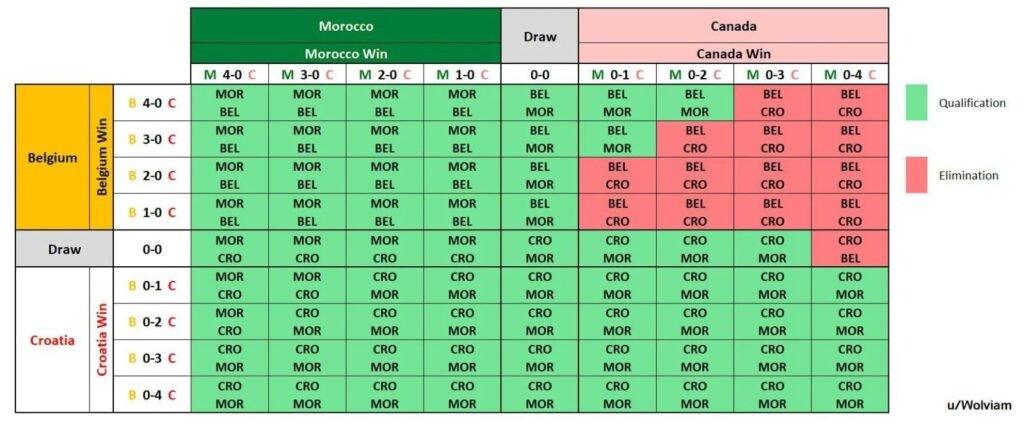 Aujourd’hui, le Maroc occupe, rappelons-le, la deuxième place de son groupe à égalité de points avec le leader, la Croatie, avec 4 points chacun. La sélection croate qui a une meilleure différence de buts (+3 ) devance la sélection nationale (+2). La Belgique, qui croise le fer ce jeudi avec la Croatie, est troisième avec trois points mais une différence de buts négative (-1). Enfin, le Canada qui n’a pas marqué le moindre point dans ce mondial enregistre une différence de buts largement déficitaire ( -4).